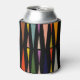 This can cooler has a mid-century modern design of triangles facing each other repeating across the design.