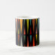 This mug has a mid-century modern design of triangles facing each other repeating across the design.