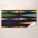 Ce kit de serviettes a un design moderne du milieu du siècle de triangles faisant face l'un à l'autre et répétant à travers le design.