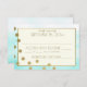 Carte de réponse mariage Festive et moderne aqua bleu base d'aquarelle pour compléter l'invitation encadrée en or et accentuée avec des points de confetti d'or imprimé design formel faire-part de mariage.