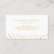 Un carte de visite moderne et chic avec des étoiles et des points de confettis en feuille d'or. Ce carte de visite élégant est parfait pour les planificateurs d'événements, wedding planners, photographes, maquilleurs, designers, agents immobiliers, blogueurs et autres entreprises. Entièrement personnalisable pour répondre à vos besoins. D'autres couleurs arrière - plans sont disponibles.