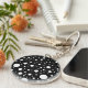 Un design amusant que j'ai créé en utilisant des points blancs de taille aléatoire sur un arrière - plan noir.