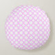 Un coussin simple et rond avec des pois blancs sur le rose.