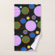 Cercles, taches et pois fantaisistes ornent cet ensemble de serviettes de bain. Ces serviettes ont des cercles de couleur vive posés sur un arrière - plan noir. Lumineuses et mousseuses, ces serviettes auront l'air bien n'importe quelle salle de bain.