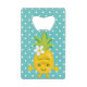 Amusant et branché, cet ouvre-bouteille de carte de crédit dispose d'un motif à pois blanc sur un arrière - plan de couleur aqua. "Good Vibes Only" est écrit en police cool bleu foncé sur un ananas jaune vif. Commandez les vôtres dès aujourd'hui ! Oeuvre pois créée par : AMBillustrations http://www.etsy.com/shop/AMBillustrations Oeuvre d'ananas créée par : Prettygrafik design (https://www.etsy.com/shop/Prettygrafikdesign)