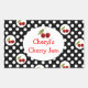 Étiquette de conserverie amusant fait en noir avec des pois blancs et des cerises rouges juteuses. Un grand cercle blanc, au centre, est décoré de cerises, au-dessus, et de texte de coutume rouge ci-dessous. Personnalisez ce mignon étiquette pour vos produits de cerise.