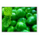 Carte pour notes avec une photo de pois frais d'été et une pointe de menthe fraîche.