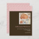 faire-part de naissance photo rose & marron "Pois". Personnalisez ce modèle de carte postale mignon et élégant avec la photo de votre petite fille et les détails pour une faire-part de naissance unique.