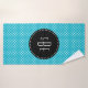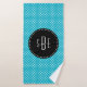 Pois turquoise et blanche avec serviette de bain en monogramme noir. Nous transportons des nattes de bain de coordination, rideau de douche et autres accessoires dans notre magasin.
