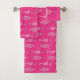 Serviette dans un motif de poisson moderne, lunatique, rétro, dans les tons pastel à rose moyen et fuchsia, sur un arrière - plan rose fuchsia moyen