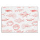 Motif vectoriel dessiné à la main avec divers poissons en couleur corail vivant et arrière - plan blanc.