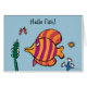 D'après son livre "L'heure du poisson" publié par Candlewick Press, cette illustration de Lucy Cousins montre son personnage, Little Fish, nageant avec un grand poisson rayé orange et violet et deux adorables hippocampes rouges. Le corail vert et bleu vif orne le fond de l'image, ce qui en fait une scène tropicale colorée.
