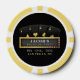 Black and gold poker themed bachelor party poker chips with four aces and marquee sign. Personalize it with your event details.