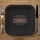 Black and red poker themed 21st birthday party paper plate with four aces and marquee sign. Personalize it with your event details.