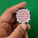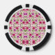 Poker chips with a vibrant pink floral pattern set against a white background. Bold black and white segments circle the edges, creating a striking contrast.