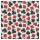 This poker inspired craft fabric has a seamless pattern made of playing card deck suits. Spades, clovers, hearts and diamonds fit together in black and red on a white background. This fabric will look great in your game room if you love any type of card game, from poker to euchre, bridge, whist or blackjack.