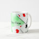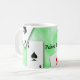 This fun coffee cup features a picture of four aces on a green background. The text Poker Time can be customized to suit your mug needs.