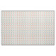 This fabric has a mid-century modern design of circles with lines behind in orange and green.