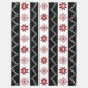 Une couverture comportant un motif des flocons de neige rouges et des rayures noires au-dessus d'un arrière - plan blanc.