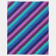 Une grande couverture en toison avec un design motif coloré de bandes diagonales en turquoise cool, bleu océan, bleu marine, pourpre prune et lavande.