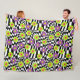 Restez à l'aise avec cette couverture en noir et blanc de style MOD avec des oeuvres florales abstraites de Buttercup's Clothing et Collectables. Une couverture amusante est munie d'un motif avec des fleurs funky dans les tons vert citron, joli violet, et rose chaud, contre un arrière - plan abstrait à carreaux noir et blanc. Différentes tailles disponibles.