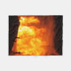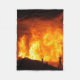Une couverture en toison avec une photo d'un bâtiment en feu.