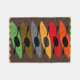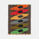 La couverture d'ouatine de Kayaker, artiste dessiné kayaks dans des couleurs de ton de la terre d'orange, de rouge, de gris, de brun et de vert sur un arrière - plan de brun foncé. Cadeau parfait pour n'importe qui qui aime kayaking.