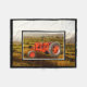 Le tracteur de C.C de caisse du cru 1948 se tient dans un domaine de luzerne aménagé en parc avec les montagnes, le ciel et les nuages imprimés sur une couverture d'ouatine.
