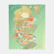 Tondez la couverture avec le koi de deux carpes dans l'illustration d'étang de nénuphar. Couleurs vertes, jaunes, d'orange et d'or.