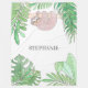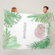 Cette mignonne couverture en toison est décorée d'une aquarelle originale d'une petite fille souriante et paresseuse suspendue à une branche entourée de feuilles de jungle.