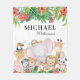 Beaux animaux de la jungle avec des feuilles tropicaux et des bordures de fleurs et de nom et de nom personnalisés.