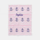 Couverture rose rayée recouverte d'ancres bleues. Fait de molleton molle. Monographie avec ton nom. Mignonne et confortable.