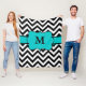 Montrez votre style d'une manière d'amusement avec cette couverture noire et turquoise de monogramme de chevron.