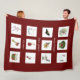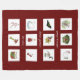 Chaque carré de cette couverture de motif en grille rouge contient une aquarelle colorée représentant chacun des douze jours de Noël avec l'expression "mon amour véritable m'a été donné" en blanc entrelacé entre les images. À partir de mon numériquement d'origine créé image.