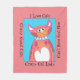 La couverture colorée d'ouatine de thème de chat, avec des graphiques de bande dessinée d'un orange, chat rose et et blanc a placé à un arrière-plan de bleu de ciel et à décorer le milieu de la couverture rose de corail. Le texte noir fait sur commande, autour de l'image de chat, peut être personnalisé pour lire ce que vous voulez. La couverture de purrfect pour tout amant de minou.