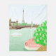 Monogram Tour Eiffel Printemps à Paris Fleece Blanket avec le paysage parisien - Tour Eiffel, Seine avec bateaux, châtaignier en fleurs et pont Alexandre (Alexandre III Pont), l'un des plus beaux endroits de Paris. Bateau rose et blanc avec nom personnalisé. Couleurs pastel : aqua, bleu, marron, vert, rose. Beau et romantique cadeau personnalisé.
