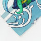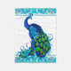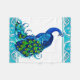 Dessin original par Sandra Gale, comportant un paon réaliste et beau, entouré par une frontière tirée par la main des remous bleus.