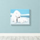 A polar bear with two cubs, wildlife art print on stretched canvas.