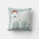 This throw pillow is perfect for Christmas or winter decorating with painted illustrations of Arctic animals in knit winter hats. There's a polar bear illustration on the front and a reindeer graphic on the back. The graphics are set against a soft mint patterned background.