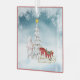 Beautiful glass Christmas ornament captures a polar bear decked out in a winter sweater, standing next to a lighted Christmas tree and a sleigh full of Christmas presents.