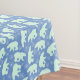 This table cloth features a hand drawn light blue polar bear and snowflake pattern on a sky blue background. Cute for the Holidays, but easily can be used all year around.