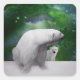 Polar Bear, cub and Northern Lights aurora Square Sticker