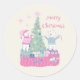 Adorable cream colour round Holiday sticker featuring two polar bear cubs decorating a Christmas tree . Personalize it with your own text . Also available in blue .