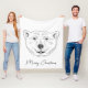 Polar Bear Head Minimal Line Art Sketch With Text Fleece Blanket