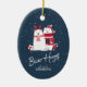 This whimsical Christmas photo ornament features an optional deep blue background topped with a red and white polar bear characters and typography text design of 'Bear Hugs' with a template to add the name of whoever's going to receive those warm, virtual hugs. The reverse holds your photo and name of whoever this ornament is from. We've designed this with a child's photo sent to Grandpa just as an example. Search ID851 to see all the coordinating products for this design.
