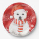 polar bear in a santa cap - snowflakes w white paper plate
