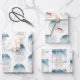 Christmas wrapping paper doesn't get any cuter than this! Three different wrapping sheets hold three different adorable polar bears - one with a snowman, one with a sleigh full of gifts, and third with a cute penguin - all with a lighted Christmas tree, and each with a holiday sentiment (i.e., Merry Christmas or Winter Magic).