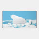 A somewhat stylized, blue-toned image of a Polar Bear (Ursus maritimus) resting on the polar ice pack on on a dark, moonlit winter night. Add your own text.
