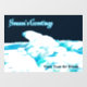 A somewhat stylized, blue-toned image of a Polar Bear (Ursus maritimus) resting on the polar ice pack on on a dark, moonlit winter night. Text reading, "Season's Greetings" appears in glowing blue and white. Add your own additional text.