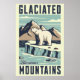 The image depicts a stylized polar bear standing confidently on an iceberg. It uses bold lines and a limited color palette to create a vintage travel poster feel.